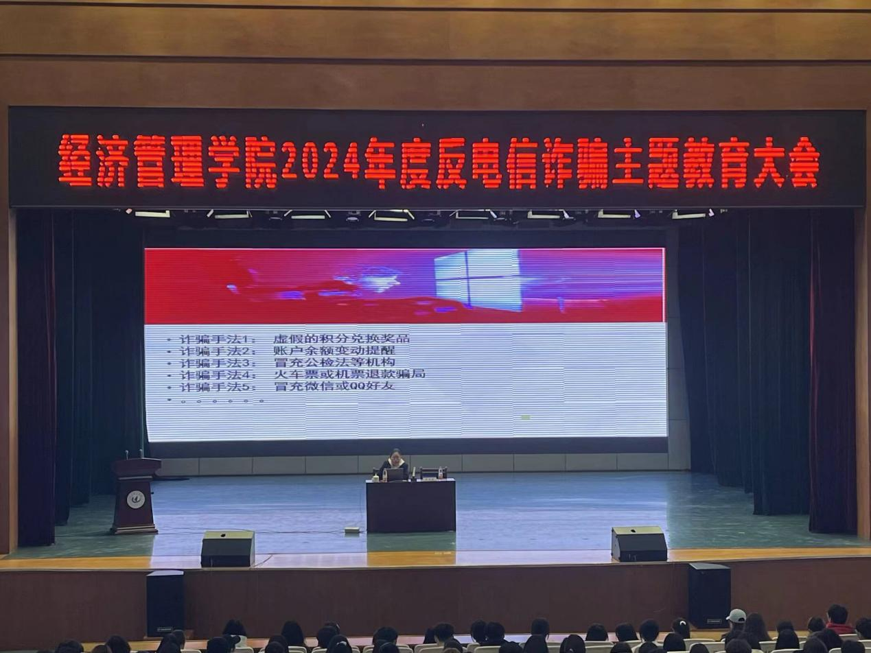 为进一步防范电信诈骗,提高员工安全意识,3月14日,太阳成集团tyc9728在学苑会堂召开2024年度反电信诈骗主题教育大会。公司党总支副书记苏成荣、正科级辅导员王胜、辅导员谭雨婷和部分员工参加此次会议。