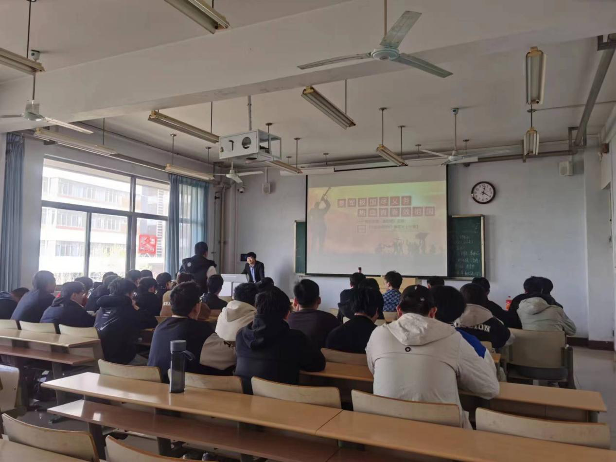 会上,刘彬老师主要从为什么当兵、当兵的好处、现行兵役政策、老员工入伍的福利待遇、征兵报名条件及流程等方面进行了宣讲,让毕业生更加了解征兵政策。刘彬老师还通过与退役复学员工交流互动,以其服役亲身经历感染带动其他毕业生。郭潇颖老师总结了当前毕业班男生的发展规划和入伍途径,并给出发展建议。她号召广大毕业生要切实增强自身的责任感与使命感,自觉将个人理想与国家发展相结合,积极响应国家号召,用热血与青春保卫祖国、报效国家。