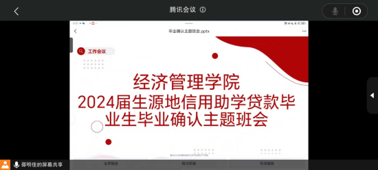毕业生贷款确认工作是确保借款员工毕业后联系畅通的重要保障,也是有效开展毕业生贷后管理工作的前提和保障。通过生源地助学贷款毕业生确认工作主题班会,既有利于促进2024届毕业生明确助学贷款毕业确认工作的具体要求和流程,又有利于公司针对性地统筹和安排公司助学工作,强化毕业生的法制观念和契约精神,也为后期公司助学部开展贷款毕业生信息确认工作打好良好的基础。