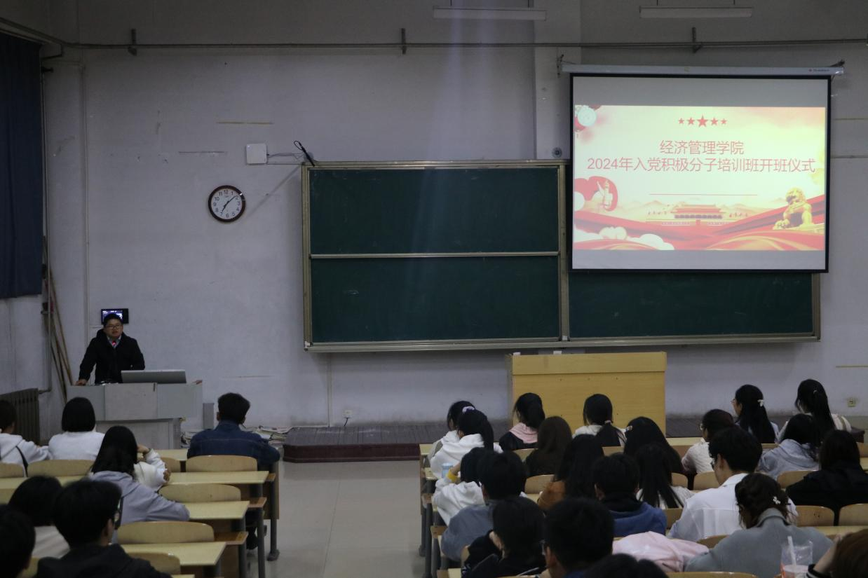 开班仪式在庄严的国歌声中拉开帷幕。开班仪式上,王胜传达了《太阳成集团tyc97282024年春季学期入党积极分子培训方案》,他指出入党积极分子集中培训是提高思想政治素质、确保发展新党员质量的需要,并从培训要求、日程安排、课堂纪律、考核方式等方面介绍了党课培训的要求,强调每位学员要遵守培训纪律,认真完成各项学习任务,注重学习实效,理论联系实际,做到学以致用。