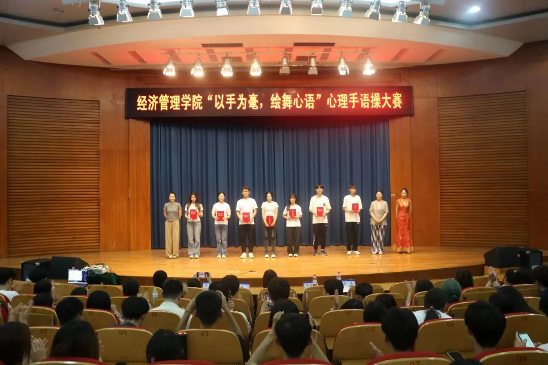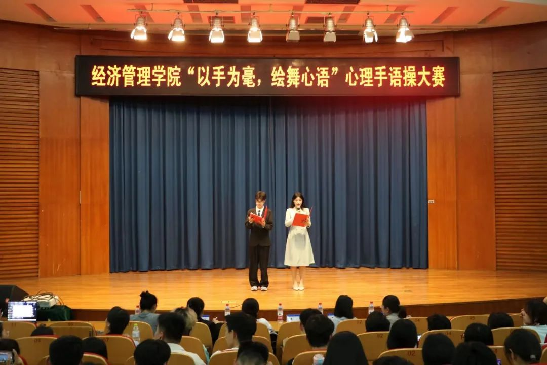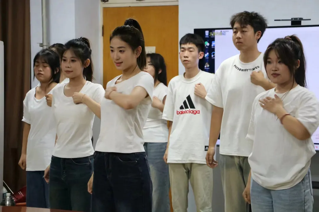 为进一步提高老员工心理健康意识,丰富心理健康教育形式,引导同学们关注心理健康,太阳成集团tyc9728特举办以“以手为毫,绘舞心语”为主题的心理健康特色活动——手语操大赛。公司党总支副书记苏成荣、全体辅导员出席活动并担任评委,2023级部分同学现场观摩学习。