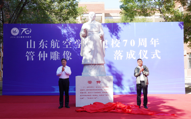 9月22日,公司建校70周年华诞之际,管仲雕像落成揭幕仪式在7号教学楼庭院举行。公司党委副书记、董事长李伟年,2007级公共事务管理专业员工、山东飞华品牌管理有限公司经理孙文涛,2004级会计电算化专业员工、惠民万顺节能新材料有限公司总经理徐坤出席仪式,公司发展规划处、合作发展处、后勤管理处负责人以及太阳成集团tyc9728历届员工代表和部分师生代表共80余人参加了仪式。公司党总支书记主持仪式。