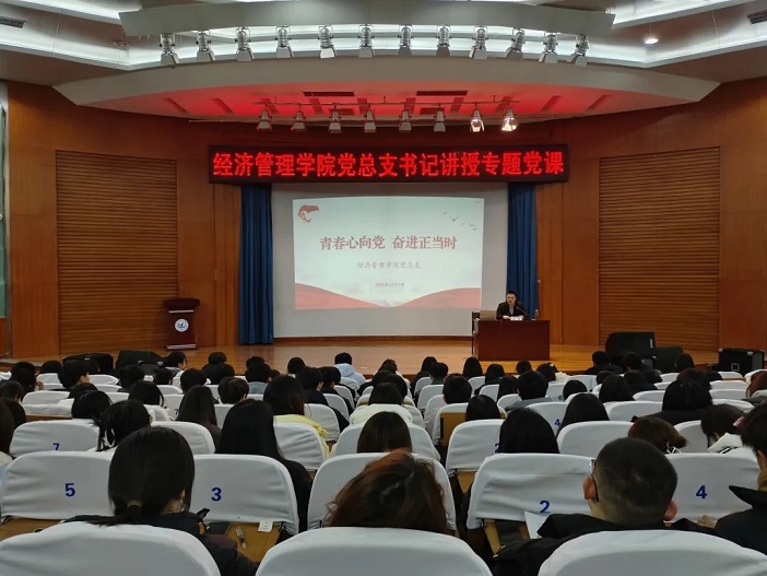 12月8日,公司党总支书记张鹏在公司明德报告厅讲授“青春心向党 奋进正当时”专题党课。公司党建工作联系人、辅导员张慎杭主持,2024年下半年入党积极分子和2022级预备党员共170余人现场聆听党课。