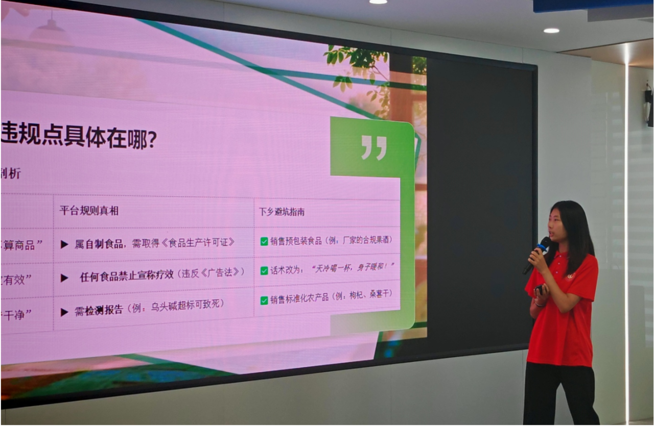 宣讲活动采用“理论讲解+案例分析+互动答疑”的形式,针对性解决居民实际需求。在家庭理财环节,团队通过“月收入8000元家庭预算模型”等具象案例,讲解收支规划、应急资金储备等基础技巧,帮助居民建立科学理财观念;防诈骗宣讲中,团队以电信诈骗常见手法为切入点,通过“冒充公检法”“虚假中奖”等典型案例解析,普及“三不一要”防范准则,发放防骗手册;医保社保新政解读聚焦参保户籍限制放开、慢特病保障升级等民生热点,用“政策明白卡”形式清晰呈现异地就医备案、报销比例调整等便民举措;抖音直播带货避坑环节则结合农户常见违规案例,重点讲解食品资质合规、虚假宣传风险等内容,提供“预冷处理+真空包装”等农产品保鲜方案。现场互动热烈,居民就“医保转移接续”“直播话术规范”等问题提问,团队成员逐一细致解答。