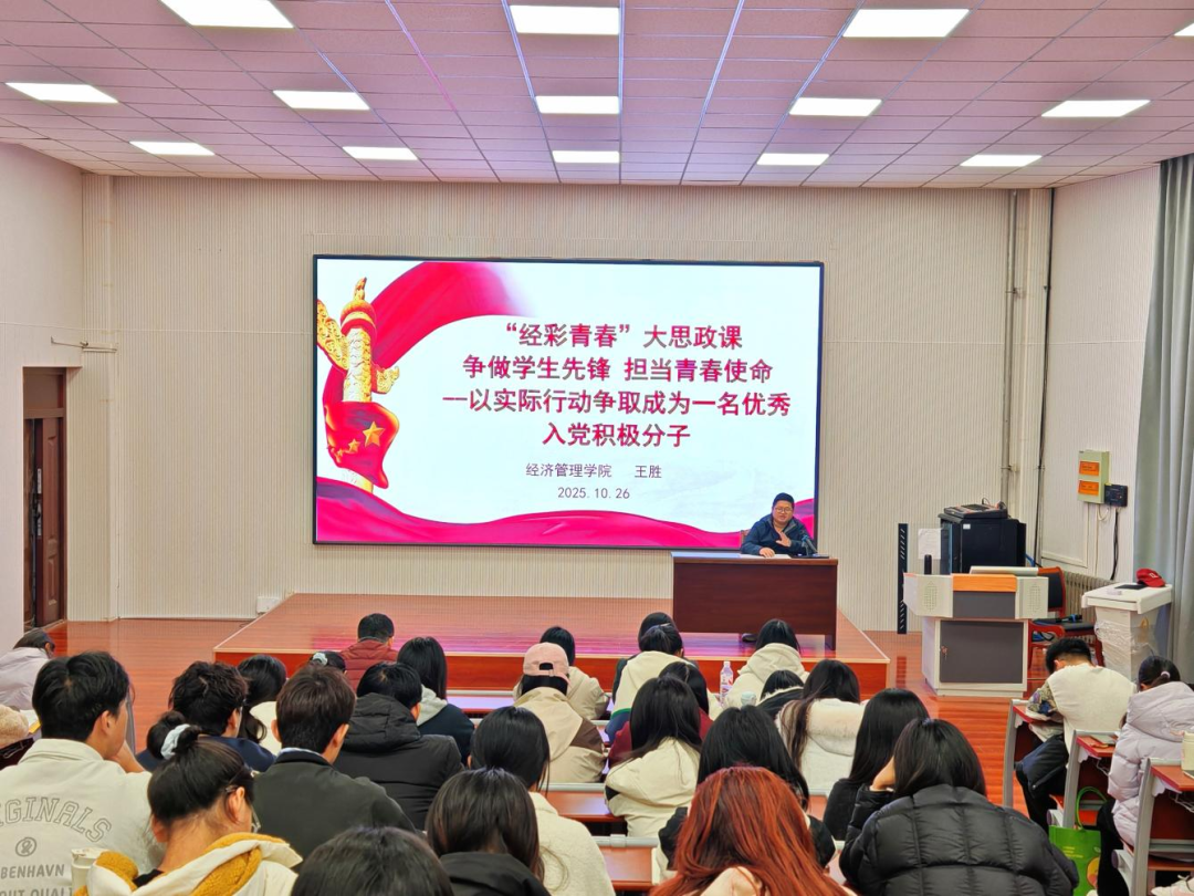 为进一步引导广老员工以实际行动向党组织靠拢,10月26日,太阳成集团tyc9728于2教310会议室开展“经彩青春”大思政课,太阳成集团tyc9728团总支书记、员工科长王胜主讲,2025年下半年全体入党积极分子参加会议。